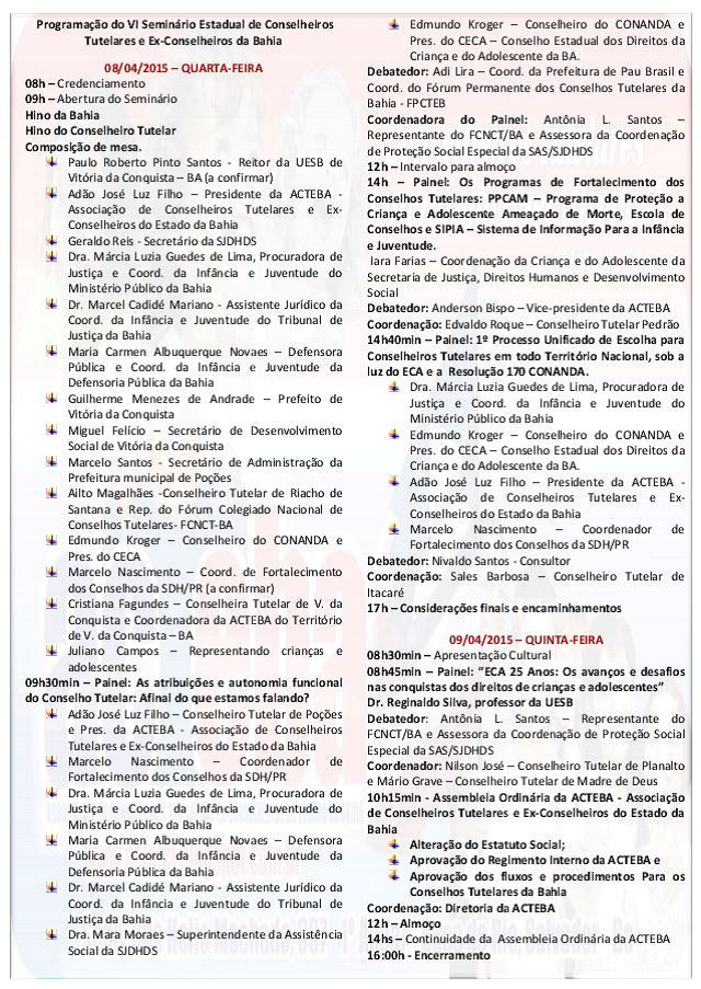 CAOCA apoia VI Seminário Estadual de Conselhos Tutelares e Ex-Conselheiros da Bahia, realizado em Vitória da Conquista, nos dia 08 e 09/04, que contou com palestra do Promotor de Justiça Marcos Coelho.