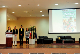 A palestra inaugural foi ministrada pela coordenadora do Caoca, que fez uma apresentação sobre “O Programa Infância em Primeiro Lugar: Avanços e Desafios”. Ao lado da técnica do programa, Nildete Costa da Mata, a procuradora de Justiça Márcia Guedes destacou a importância de divulgar o trabalho para a sociedade em geral e explicou que o programa faz parte das ações estratégicas do MP, compondo-se de quatro projetos: Fortalecimento dos Conselhos, Orçamento Criança, Medidas Socioeducativas e Especialização do Sistema de Justiça. Os projetos têm dentre seus principais objetivos promover a estruturação e a operacionalização dos conselhos; garantir prioridade para as políticas públicas voltadas para a criança e o adolescente; contribuir para a regularização da situação das crianças e adolescentes que cumprem medidas socioeducativas em meio aberto ou em meio fechado; além de fortalecer parcerias estratégicas para o aumento do número de profissionais. especializados na área infantojuvenil, contemplando a implantação de equipes multidisciplinares.