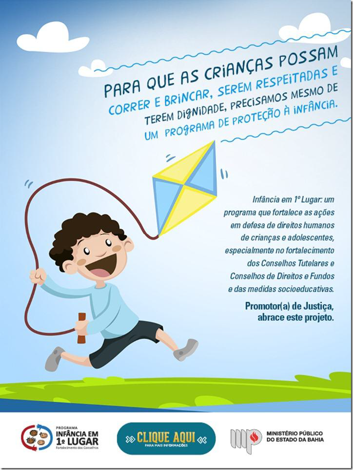 PROGRAMA INFÂNCIA EM 1º LUGAR: UM PROGRAMA QUE FORTALEÇE AS AÇÕES EM DEFESA DOS DIREITOS DA CRIANÇA E DO ADOLESCENTE. CONTAMOS COM SUA ADESÃO.